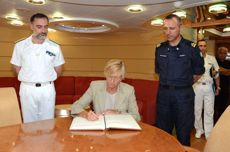 On Friday 17 July, Italian Minister of Defense, Roberta Pinotti, accompanied by the Chief of Defense, General Claudio Graziano, visited the ITS Cavour which is currently the Flagship of the EU Naval Force – Mediterranenan (EUNAVFOR MED).