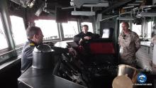At first, the delegation visited the helicopter on board, the modernized Agusta-Bell AB 212. After an explanation held by the flight crew of the helicopter, the visit continued through the infirmary, and then to the operational rooms of the frigate, as the Combat Information Centre (CIC).