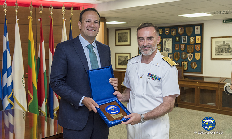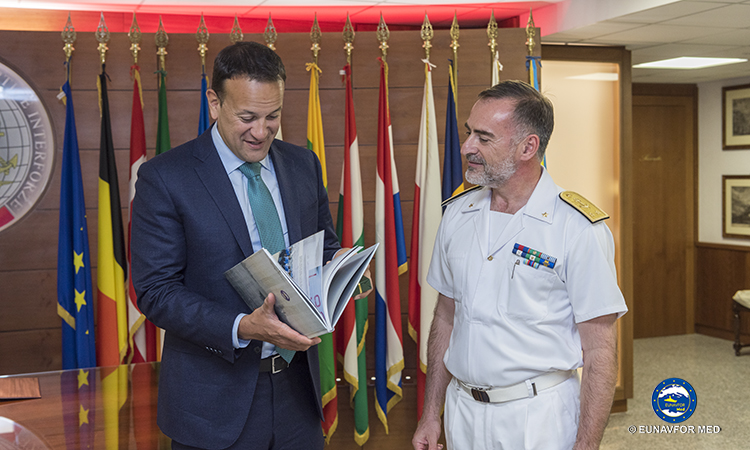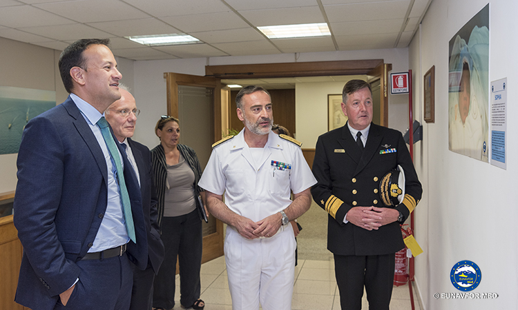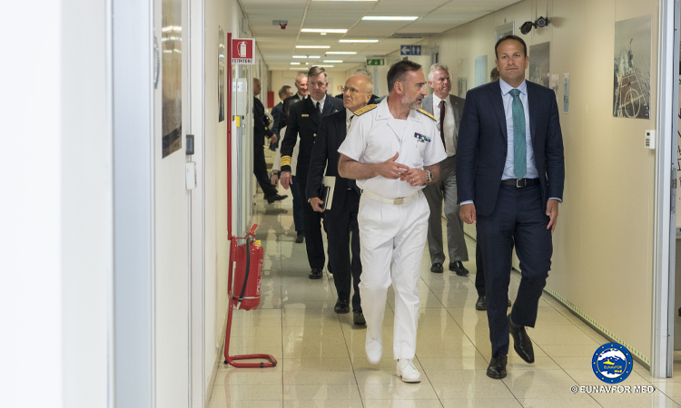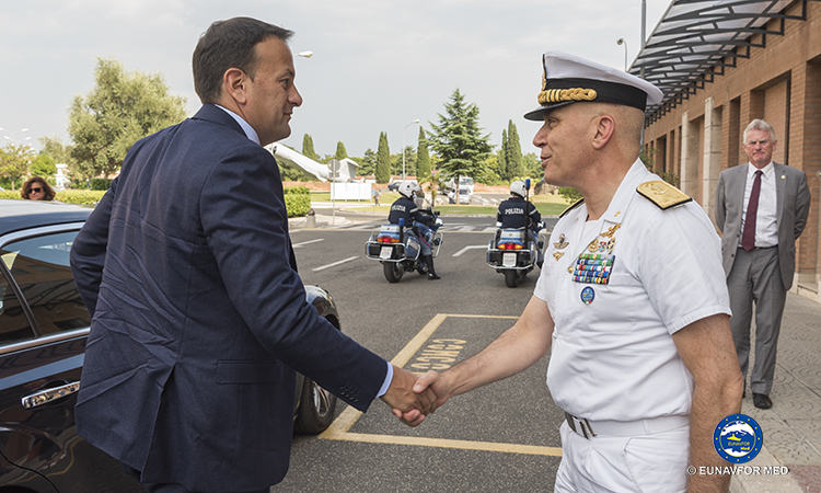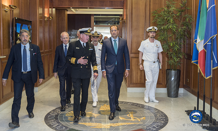 The Prime Minister, Mr. Leo VARADKAR T.D., paid a visit to EUNAVFOR MED Operation Sophia’s Operational Headquarters in Rome on 26 July 2018 where the Operation Commander, Rear Admiral (UH) Enrico CREDENDINO, provided a detailed update on the operation.